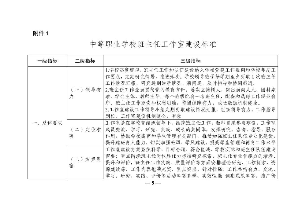 各省级教育行政部门指导本地区中职学校,对照《中等职业学校班主任工作室建设标准》(附件1,以下简称《标准》)加强工作室培育建设工作。