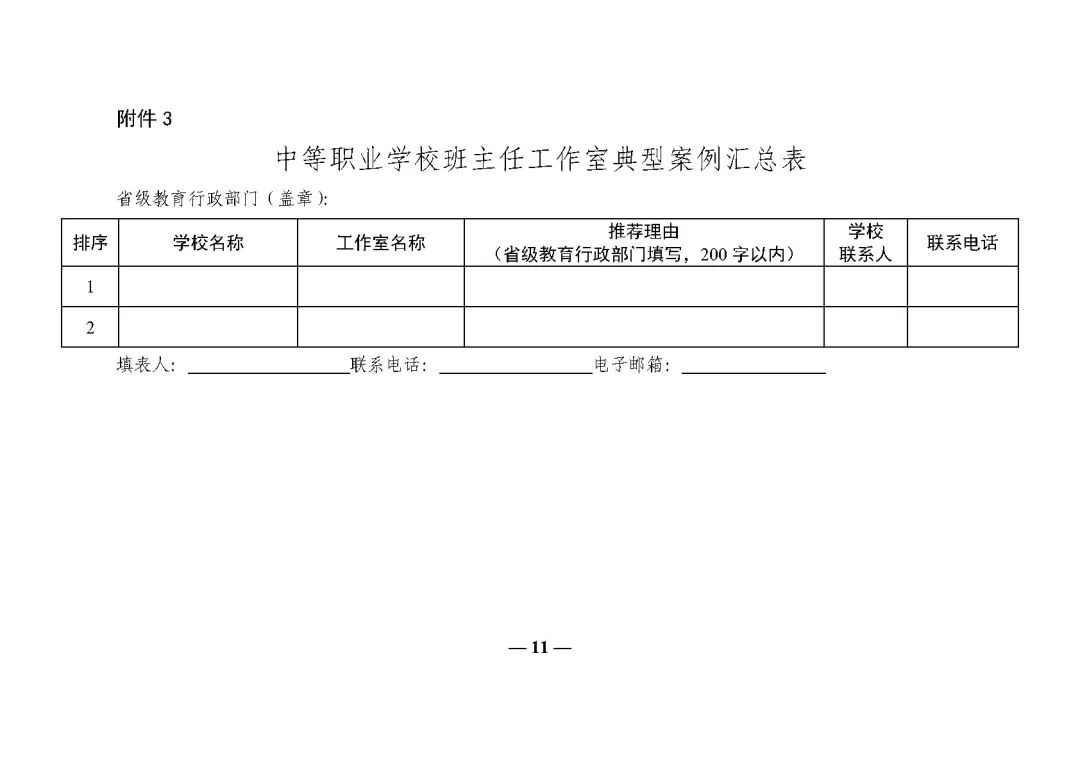 请各省级教育行政部门于2022年9月30日前,将阶段性工作小结、工作室建设情况信息表(附件2)、1—2个典型案例(3000字以内)、典型案例汇总表(附件3)报送至教育部职业教育与成人教育司,同时发送电子版。
